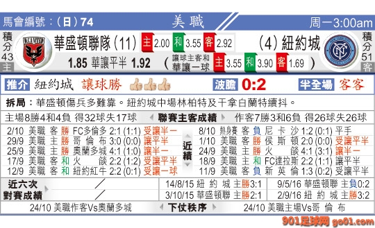 > 03:00 美職聯 華盛頓聯隊:紐約城