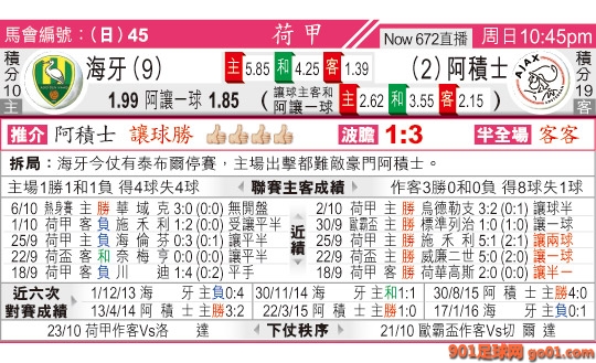 > 22:45 荷甲 海牙:阿積士