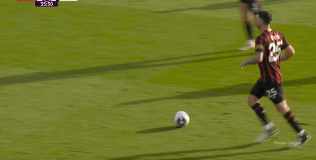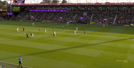 第31分钟,加纳乔助攻,B费在禁区内凌空破门。