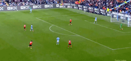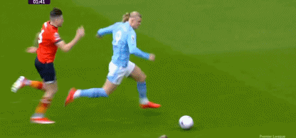 第2分钟,哈兰德禁区内凌空抽射,球碰到卢顿后卫之后变线入网。