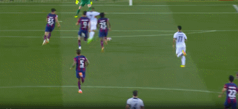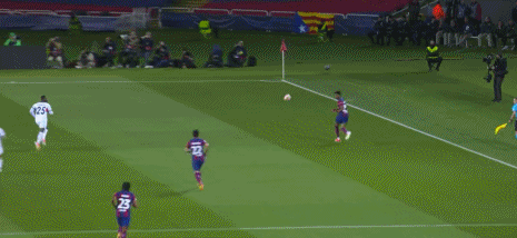 第12分钟,亚马尔右路突破之后传中,拉菲尼亚破门。