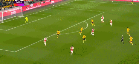 4月21日,英超第34轮,阿森纳客场2-0战胜狼队。