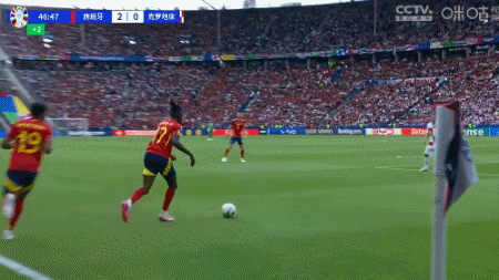 第45分钟,亚马尔助攻卡瓦哈尔破门。