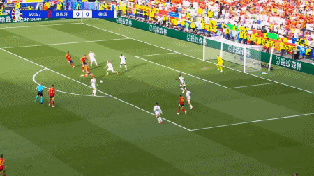 第51分钟,亚马尔禁区右侧传中,奥尔莫抢点破门。