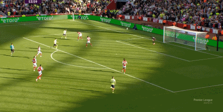 第88分钟,萨卡在禁区内推射破门。