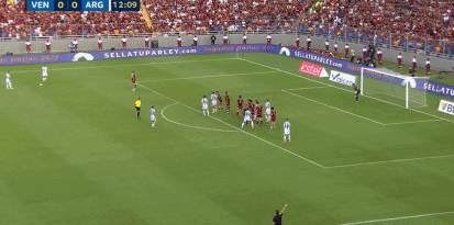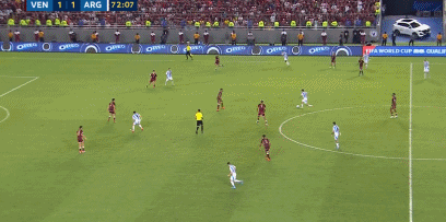 第13分钟,梅西开出任意球,委内瑞拉门将出击失误,奥塔门迪轻松破门。