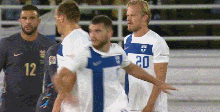 10月14日,欧国联B级联赛,英格兰主场3-1战胜芬兰。
