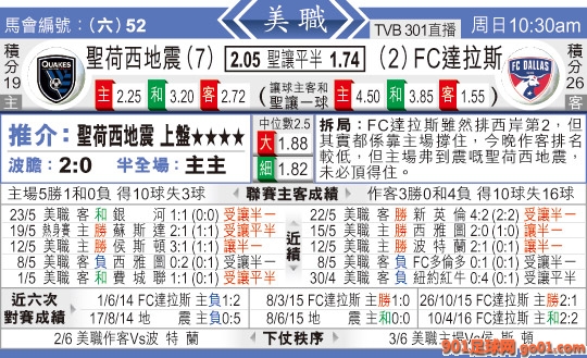 10:30 美職聯 聖荷西地震:FC達拉斯