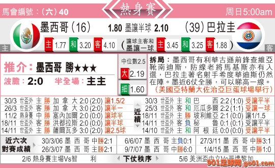 > 05:00 國際賽 墨西哥:巴拉圭