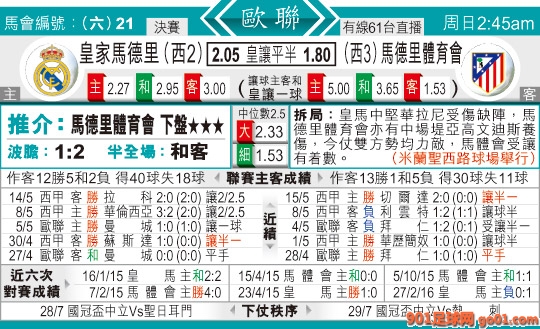 02:45 歐聯 皇家馬德里:馬德里體育會