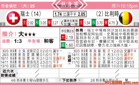 22:15 國際賽 瑞士:比利時