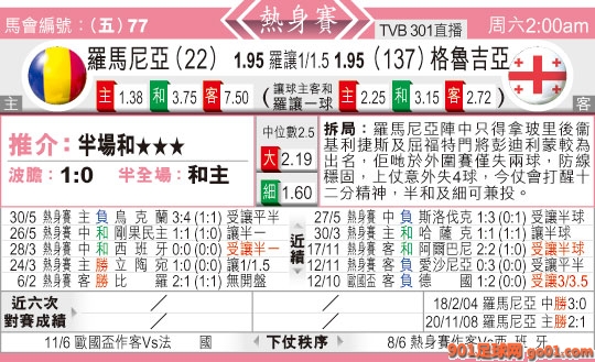 > 02:00 國際賽 羅馬尼亞:格魯吉亞