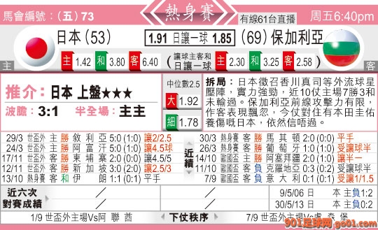 18:40 國際賽 日本:保加利亞